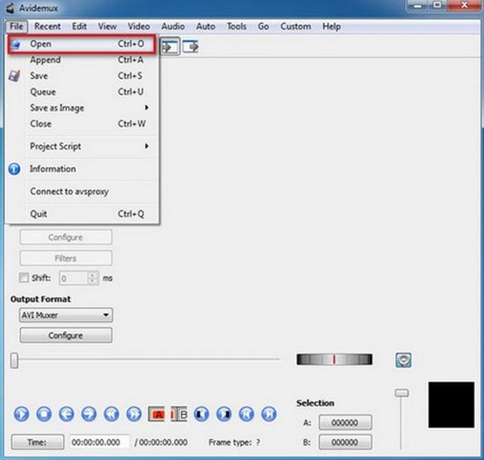 Đầu tiên từ menu chọn File -> Open để mở file video cần cắt.