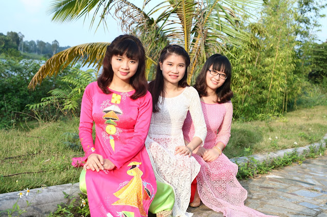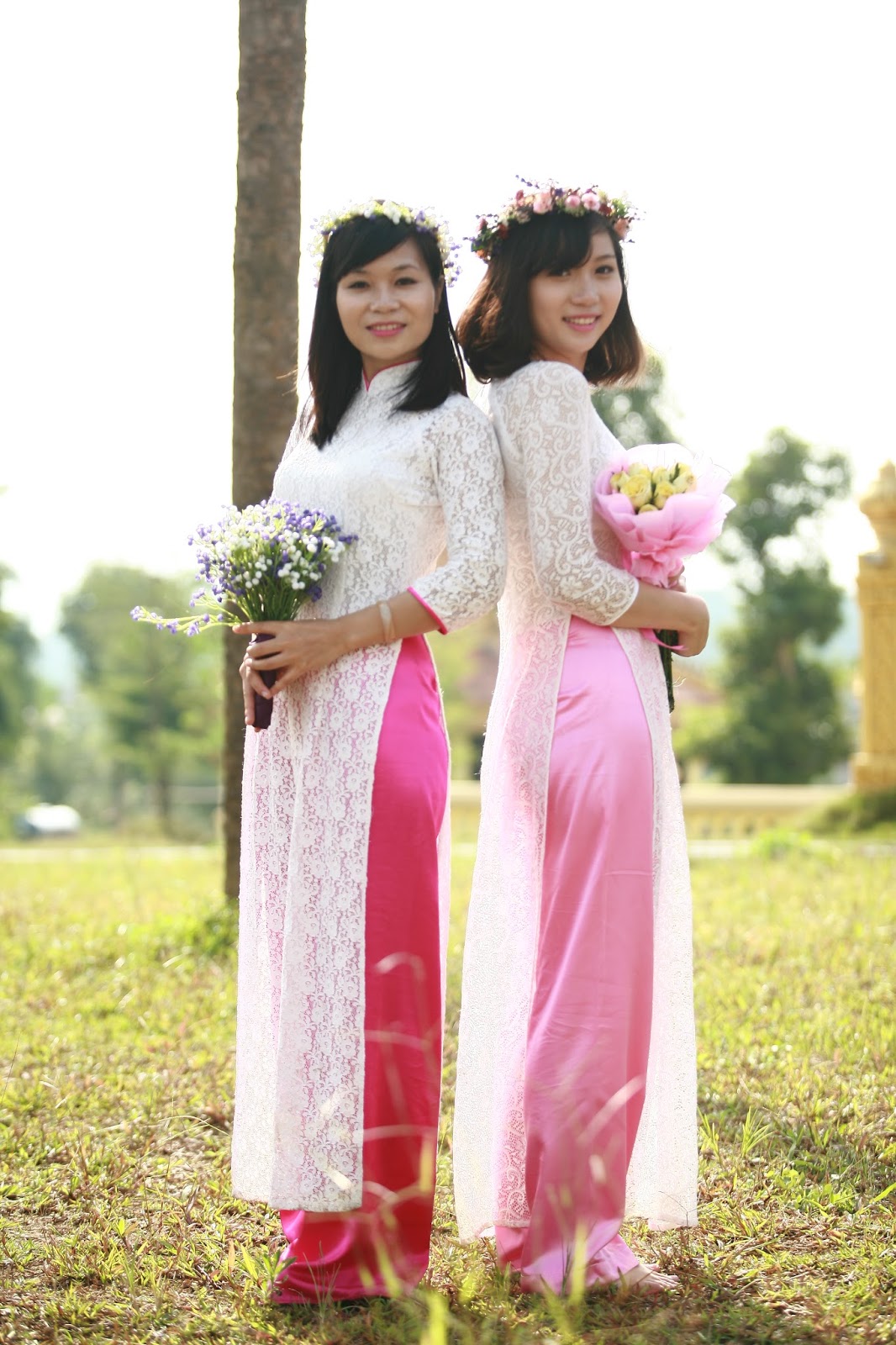 đa số các bạn nữ chọn áo dài ren trắng hoặc nền trắng, in hình hoa nổi,