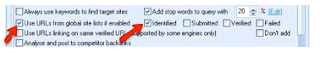 14. Sử dụng các URL từ danh sách trang web toàn cầu nếu được kích hoạt: Tại đây bạn có thể thiết lập SER để đọc các liên kết cho mục tiêu mới. Sự khác biệt quan trọng từ các cài đặt toàn cầu: SER chỉ đọc danh sách, vì vậy đề nghị của chúng tôi là nhập khẩu một danh sách liên kết mua để xác định danh sách và kích hoạt chỉ "xác minh" trong các tùy chọn toàn cầu.