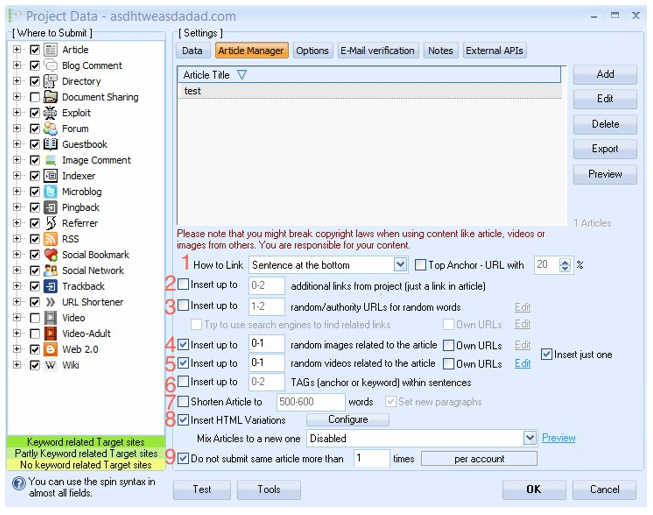 Để có thể đọc được, chuẩn bị nội dung xoay, Article Builder là sự lựa chọn đầu tiên. Nó cũng được tích hợp trong GSA, vì vậy nó chỉ mất một vài lần nhấp chuột để giải quyết tất cả các vấn đề nội dung của bạn!