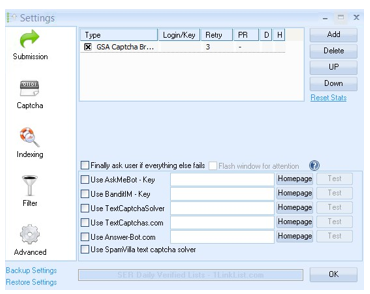 7. Captcha thử lại: Nó là hoàn hảo nếu bạn thiết lập số lượng mã xác nhận khác thử lại đến 3. GSA Captcha đập vỡ có tỷ lệ giải pháp chính xác rất tốt. Ví dụ, nếu bạn thiết lập về hưu đến 10 hoặc hơn, cơ hội mà captcha sẽ được giải quyết (nếu nó đã không được giải quyết sau 3 lần thử lại) là thấp. Các thiết lập tốt nhất cho hiệu suất và tỷ lệ cược của giải pháp là 3.