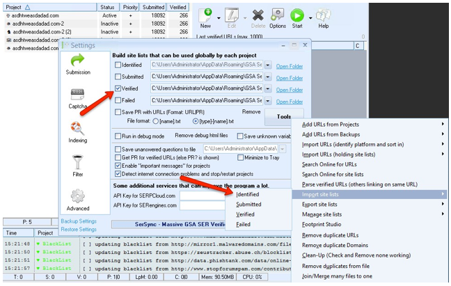 Tại sao hai loại danh sách khác nhau? Đối với các URL xác nhận chúng tôi đang chạy GSA và GSA Captcha đập vỡ như kết hợp để tạo backlinks. Nhưng nó có thể được rằng bạn đang sử dụng khác / ngoài / hướng dẫn các dịch vụ mã xác nhận khác. Những dịch vụ này sẽ cung cấp cho bạn kết quả khác. Trong trường hợp này, bạn có thể quyết định sử dụng danh sách liên kết được xác định.