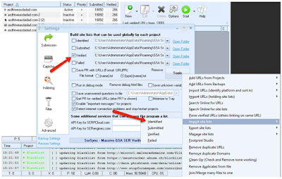 SER đầu tiên sẽ sử dụng bộ nhớ cache mục tiêu URL. Ngay sau đây là trống rỗng, nó sử dụng các liên kết từ danh sách toàn cầu. Bạn đang suy nghĩ - tại sao bạn không kiểm tra danh sách xác minh? Bởi vì nó nhỏ ngay bây giờ. Khi SER đã được chạy trong một vài tuần, bạn có thể tạo backlinks nhanh hơn với chỉ danh sách xác nhận của bạn. Nhưng tuy nhiên nó luôn luôn cần thiết để chạy SER với danh sách "xác định" trong khi chờ đợi để làm mới danh sách xác nhận từ thời gian để thời gian.