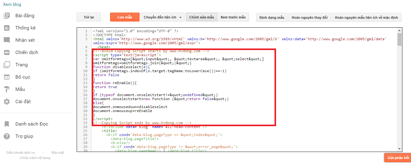 Minh học cụ thể với blogspot, còn các mã nguồn khác sẽ làm tương tự.